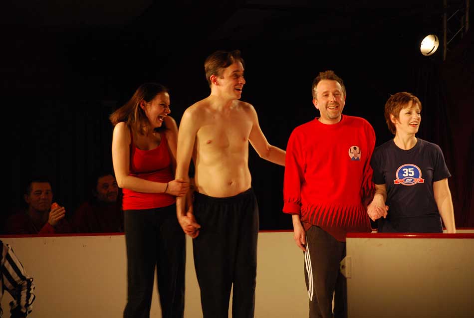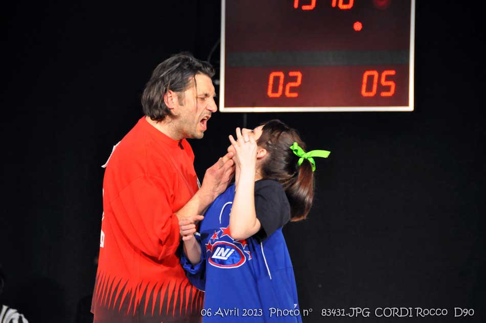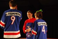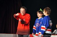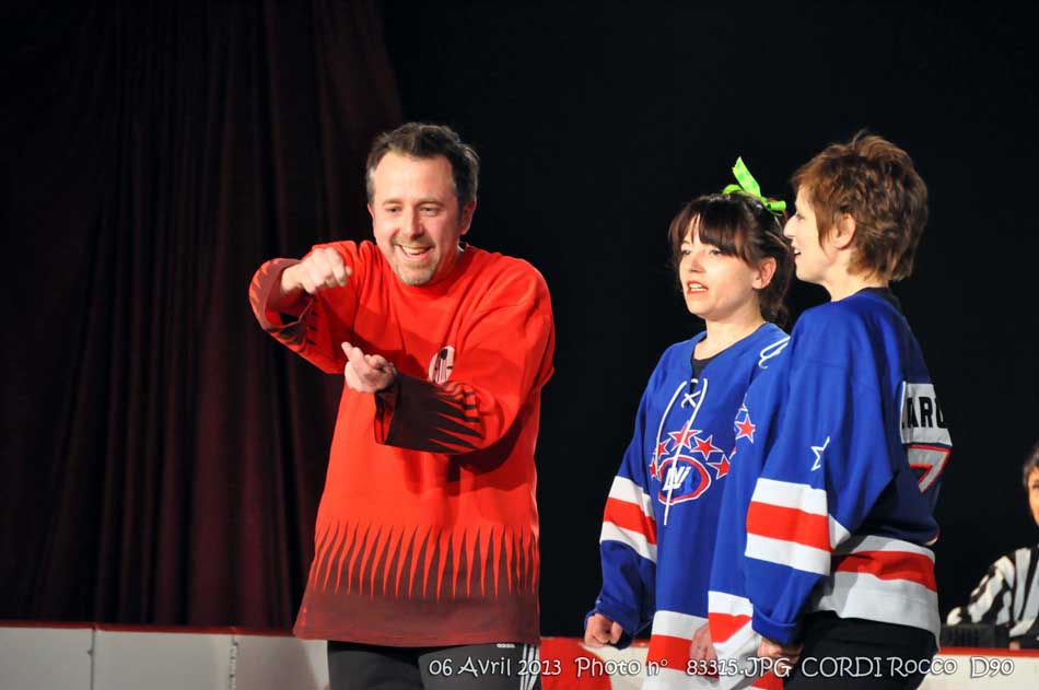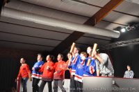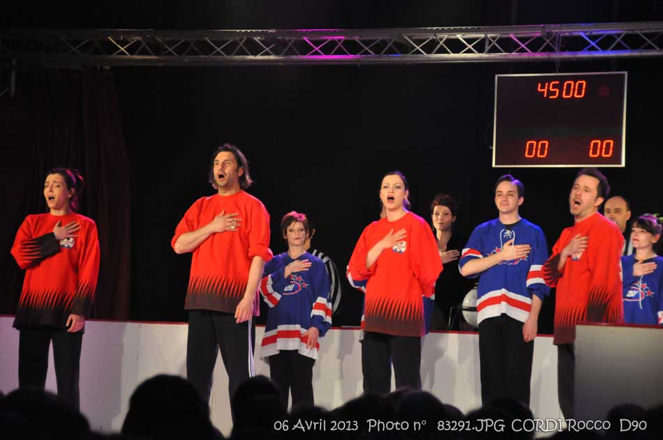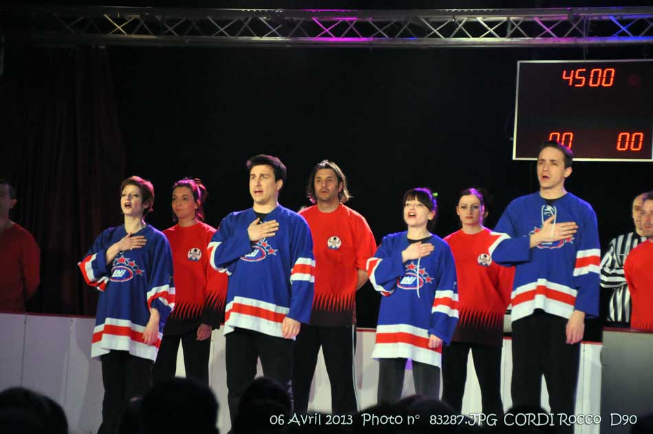 chacun leur tour viennent au centre de la patinoire pour chanter leur hymne