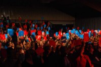 Le public est ravi et donne son avis grâce aux cartons de vote. Les rires