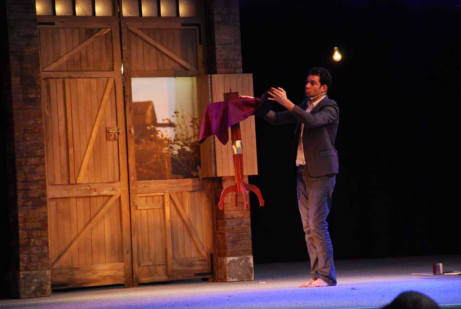 magie, illusionnisme et théâtre. Armé d’un script, l’artiste enchaîne divers