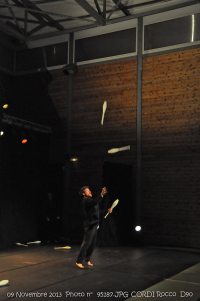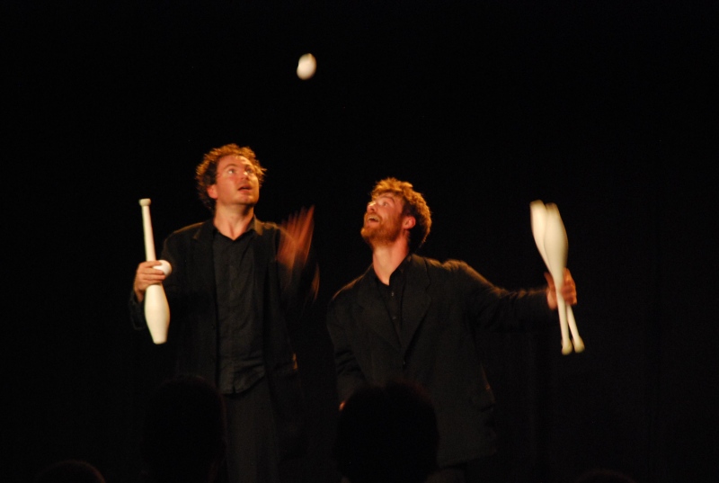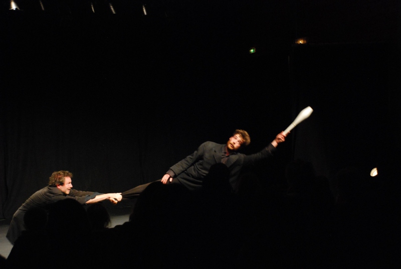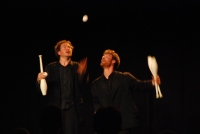 sa veste. Puis des balles arrivent sur scène d’on ne sait où. Les jongleries